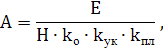 где Е – максимальное количество пиломатериала, хранимое на складе, м3; Н – высота штабеля, м; kО – коэффициент объемного заполнения штабеля; kУК – коэффициент неполноты укладки штабеля; kПЛ – коэффициент использования площадей склада;