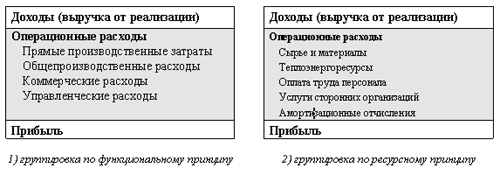 Рис.Ф1-2. Структура БДР в кратко- и долгосрочной перспективе.[6] Первому варианту соответствует традиционное построение БДР по функциональному принципу (состав поддерживаемых функций определяется организационно-функциональной моделью предприятия). Второму варианту – построение БДР по ресурсному принципу, где отражается общее плановое или фактическое потребление (использование) ресурсов пропорционально объему реализованной за период продукции. Очевидно, что прибыль, подсчитанная этими способами, одинакова – отличается лишь способ группировки затрат. Выбор разных вариантов построения БДР определяется тем, что для финансового планирования в краткосрочной и долгосрочной перспективе используются разные техники. Бюджетирование (в узкой трактовке этого термина) представляет собой метод краткосрочного проектирования будущих значений финансовых отчетов, основанный на том, что каждая их статья получает своего «хозяина». В краткосрочном периоде ответственность за статьи затрат в БДР возлагается на центры финансовой ответственности – ЦФО. Подразделения, объединенные в ЦФО, ответственные за группу функций, берут на себя ответственность за доходы и затраты, связанные с выполнением этих функций. Определив структуру статей расходов, т.е. принципы группировки, состав и степень их детализации, закрепив ответственность за них, компания в дальнейшем может четко определить, за счет каких конкретных статей складывается общая величина доходов и расходов, за счет чего происходят отклонения и кто за них отвечает. В краткосрочной перспективе в качестве основного метода планирования, как правило, должен использоваться метод «нулевого баланса» – бюджет составляется не на основе затрат – результатов прошлого периода, а на базе известных событий и запланированных мероприятий В долгосрочной перспективе планируются не затраты на выполнение выделенных функций, а общее количество затрат на потребляемые предприятием ресурсы. Финансовая информация группируется и собирается не в разрезе реализуемых функций (бизнес-процессов) по центрам затрат и доходов, а по видам ресурсов. Соответственно, в долгосрочном БДР данные группируются по факторам производства – сырье и материалы, труд, топливо – то есть ресурсам, которые имеют свою цену. В этом случае можно синхронно прогнозировать на длительную перспективу изменения как цен на продукцию предприятия и, соответственно, уровень сбыта, так и цен на необходимые для осуществления деятельности ресурсы. Относительно каждого вида ресурсов требуется сделать свой прогноз. Такой бюджет, помимо изучения ожидаемых макроэкономических условий в будущем (макросреды), опирается на данные отчетности за предыдущие периоды. Анализируя их, можно увидеть тенденции по всем составляющим. Прогнозы относительно каждого вида ресурса составляются не только теми подразделениями, которые эти ресурсы используют, но и теми, кто может оценить будущие тенденции изменений в их объемах и цене, а также реально повлиять на эти изменения (например, путем анализа рынка поставщиков). В краткосрочном БДР за планирование величины прямых производственных затрат отвечает только ЦФО производства. В долгосрочной же перспективе за прогнозирование этой группы затрат, наряду с производством и технологическим отделом могут от