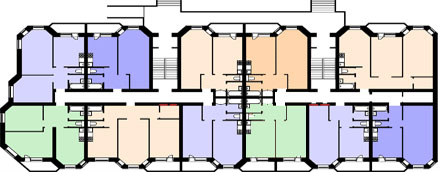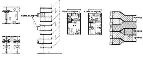 Описание дома: Двухсекционный 3-х этажный каркасно-монолитный, со сложным фасадом. Индивидуальный проект Покупатель новой волны Хотя клубные дома присутствуют на рынке столичной недвижимости не первый год, о точной трактовке самого этого понятия застройщики и риэлторы не могут договориться по сей день. Для кого-то клубный дом подразумевает исключительно малоквартирность – до десяти апартаментов. Кто-то расширяет эти параметры до 25-35 квартир, отмечая, что самое главное в клубном доме – его «эксклюзивная концепция» и, конечно, закрытость. Последний фактор для большинства покупателей продолжает оставаться решающим при принятии решения о покупке квартиры в подобном элитном клубном комплексе. Несмотря на то, что цены на квартиры в клубных домах не снижаются, в последние несколько лет застройщики изменили свое отношение к этому сегменту рынка. Девелоперы уже меньше заинтересованы в строительстве небольших домов. В первую очередь это происходит из-за более низкой доходности проекта подобного особняка, чем просто элитного, но многоквартирного дома. Получается, что рентабельность вложений в строительство клубного дома ощутимо ниже аналогичного показателя при возведении многоквартирного комплекса. Риэлторы утверждают: разница может доходить до 40 процентов. Спрос на клубные дома начинает снижаться и у покупателей. Особенно неприятны и ощутимы для кошелька владельца квартиры ежемесячные платежи за эксплуатацию здания. Проблема в том, что жителям малоквартирных строений приходится делать более существенные эксплуатационные платежи, чем тем, кто обитает в обычном 100-квартирном элитном доме. Предлагается такая сравнительная арифметика: в первом случае ставка ежемесячных платежей составляет $4-5 с одного кв. метра, тогда как во втором – $1,5-2,5. Постепенно утрачивается и грань исключительной приватности, закрытости, за которую эти дома и получили свое название. Сейчас в большинстве случаев face control – это просто хороший маркетинговый ход для привлечения дорогих клиентов. Жесткого отбора и отсева потенциальных жильцов уже не происходит. Больше того, стали появляться покупатели, которые приобретают квартиры в клубных домах не для собственного проживания, а для того, чтобы просто вложить деньги в недвижимость. И в дальнейшем – перепродать квартиру или сдать в аренду. Понятно, что в такой ситуации face control становится весьма условной процедурой. Галерейные дома У галерейных и коридорных домов есть общие черты. И тот, и другой тип дома в основе своей планировочной структуры имеют развитую горизонтальную коммуникацию, при помощи которой квартиры соединяются с лестницей. У галерейных и коридорных домов общие структура и конструктивное решение, идущие от блокированного дома. Галерейный тип дома предназначен в основном для тёплового климата. Коридорный тип дома более соответствует суровым климатическим условиям. Галерейные дома отличаются разнообразием архитектурно планировочных и объёмно-пространственных решений по конфигурации планов, по расположению галерей и по планировке квартир. Планировочные схемы галерейных домов можно свести к трём основным группам: линейным, сочленённым, пространственным. К линейным схемам относятся дома, в основе конфигурации которых заложено линейное построение плана. Конфигурация домов может б