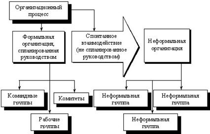 6. ФОРМУВАННЯ МЕХАНІЗМІВ УПРАВЛІННЯ ГРУПАМИ ПРАЦІВНИКІВ В ОРГАНІЗАЦІЇ Групова взаємодія і групова робота важливі як для співробітника, так і для працедавця. Фахівцеві групова взаємодія дозволяє реалізувати багато особових мотивів (наприклад, мотиви приналежності, причетності, пошани і визнання), а для працедавця групова робота часто є обов'язковою умовою реалізації намічених планів. Якщо офіційні відносини регламентуються відповідними інструкціями, наказами, розпорядженнями, то неофіційні не регламентуються ніким і нічим. Тому слід мати на увазі, що процес управління відноситься до створення і функціонування формальної організації. Проте треба знати, що усередині всякої формальної організації існують і неформальні організації, які до певної міри впливають на політику формальної. Це пов'язано з тим, що кожен член трудового колективу належить одночасно до багатьом групам. Механізм утворення формальних і неформальних організацій представлений на мал. 6.