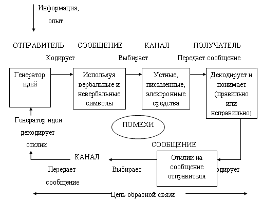 Рисунок 1 – Простая модель процесса коммуникации Хотя весь процесс коммуникации нередко требует всего нескольких секунд и, следовательно, выделить в нем этапы довольно трудно, нужно проанализировать каждый из них и рассказать о проблемах, возникающих на каждом из этапов. Этот анализ похож на исследование кадров очень короткого эпизода кинофильма. 1) Генерирование идеи Коммуникации начинаются с формулирования идеи или отбора информации. Отправитель решает, какую важную идею или сообщение надо донести. К сожалению, многие такие попытки дают сбой уже на первом этапе, поскольку отправитель не уделяет достаточного времени обдумыванию идеи. Важность данного этапа подчеркивает К. Дэвис: «Неудачно составленное сообщение не улучшат ни глянцевая бумага, ни громкоговоритель. Девиз данного этапа — «Не начинай говорить, не начав думать». Важно помнить, что на этом этапе идея еще не воплощена в словах или в другой форме, в которой она будет передаваться. Отправитель только решил, какую именно концепцию он хочет донести. Чтобы сделать это эффективно, надо учесть множество факторов. Например, менеджер, желающий сообщить людям о результатах оценки их деятельности, должен четко понимать, что ему необходимо донести до подчиненных конкретную информацию об их сильных и слабых сторонах и о способах улучшения результатов. Его сообщение не должно состоять из смутных похвал общего характера или критики. Этот пример также отражает взаимосвязь между восприятием и коммуникацией. Если менеджер считает, что его подчиненные способны развиваться и совершенствоваться и, следовательно, информация об оценке результатов их деятельности им будет полезна, то он, по всей вероятности, найдет позитивные конструктивные идеи. Если же менеджер воспринимает подчиненных, как детей, которым нужно, чтобы им точно сказали, в чем они не правы, и указали им верный путь, то, скорее всего, доносимые им сообщения будут основываться на негативной критике, что свойственно такому образу мышления. Вот еще пример потенциальных проблем на этапе генерирования идеи: директор завода, только что получивший от руководства фирмы сообщение, что он должен на 6% увеличить выпуск видеоигр, не повышая при этом выплат работникам за сверхурочный труд. Если директор не обдумает, как следует донести эту информацию до подчиненных, и просто передаст им полученное сверху сообщение, вполне может возникнуть непонимание, поскольку рабочие в лучшем случае поймут только то, какие изменения необходимы. Если же директор завода тщательно продумает идеи, которые ему необходимо донести, он, вернее всего, сделает следующие выводы. 1) Важно, чтобы рабочие поняли, какие именно изменения необходимы: увеличение объема производства на 6% без дополнительных сверхурочных выплат. 2) Важно, чтобы рабочие поняли, почему нужны эти изменения, иначе они могут сделать вывод, что компания просто хочет, чтобы они работали больше и столько же получали, что вызовет их негодование. 3) Важно, чтобы рабочие поняли, как осуществить изменения; что нельзя жертвовать качеством продукции во имя увеличения объема производства, иначе продуктивность понизится, а не увеличится, как это подразумевалось в исходном сообщении руководства. Менеджеры, недостаточно эффективно действующие в процессе коммуникации, часто действуют так пот