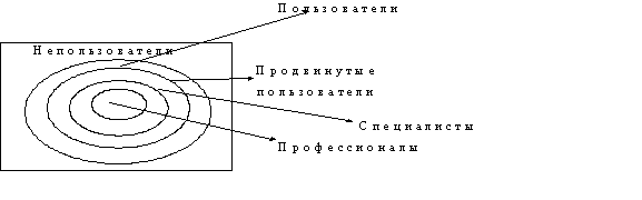 Рисунок 4 – Распространение информации Поле, на котором располагается самая внешняя окружность, – это «территория», соответствующая общему населению Краснодара и края. Самая внешняя окружность соответствует общему числу пользователей. Следующая окружность соответствует кругу людей, являющихся продвинутыми пользователями-энтузиастами применения информационных технологий, хотя многие из них не обязательно любят технику, не умеют программировать и не знают, как разобрать компьютер. Третья окружность описывает число людей-специалистов, которые знают, как написать программу, как собрать комплект оборудования и влюблены в компьютерную технику. Центральная окружность представляет людей-профессионалов, чья жизнь и зарплата зависят от компьютерной техники. В основном это сотрудники информационных отделов и управлений различных организаций. Эти люди настоящие эксперты, они знают рынок информационных технологий и почти мгновенно вырабатывают решение о любых товарах, услугах и фирмах, которые представлены на этом рынке. Для того, чтобы быстро и эффективно распространить информацию о товаре, услуге или фирме, следует заронить ее в самый центр системы, а дальше она распространится сама собой – как круги по воде. Именно так поступает фирма «Trade Master», проводя коммуникативную политику, направленную в первую очередь, на профессионалов, работающих на рынке информационных технологий. Для привлечения их внимания фирма использует следующие мероприятия: ¾ организует выставки и презентации, где специалисты могут увидеть товар в действии, получить ответы на интересующие вопросы относительно его технических характеристик, ознакомиться с рекламными проспектами, завязать прямые контакты с представителями фирмы; ¾ ведет семинарскую деятельность (в том числе участвует в семинарах сторонних организаций и фирм). Однако, учитывая двухуровневую систему принятия решений о закупках в организациях, мало показать техническим специалистам достоинства предлагаемых товаров и услуг. Необходимо еще убедить руководителя предприятия-заказчика в надежности и компетентности фирмы-поставщика. А так как для руководителей предприятий основным критерием надежности часто является известность фирмы, то для достижения узнаваемости и создания благоприятного образа фирма «Trade Master» проводит следующие мероприятия: ¾ установка информационных и рекламных щитов в центре города; ¾ размещение информационных и рекламных материалов в отраслевых периодических изданиях на корпоративной основе; ¾ разработка фирменного стиля. В целом, для продвижения своего товара – компьютерных сетей, фирма «Trade Master» использует канал личной коммуникации, считая его наиболее действенным и эффективным при работе с корпоративным заказчиком. При этом она использует наиболее качественный подход, учитывающий и удовлетворяющий персональные потребности каждого отдельного потребителя. Прежде чем предложить свои услуги той или иной организации, фирма «Trade Master» собирает все необходимые сведения (наличие компьютерных сетей и их состояние, проблемы, возникающие при эксплуатации и возможности их устранения, финансовое состояние организации и так далее). Затем, если выявлены какие-либо недостатки, то разрабатывается проект модернизации сети, а также рассчитываются затраты на 