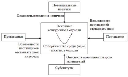Рис. 2. Модель «Пять сил Портера» · Затем оценивается возможная сила влияния для каждой группы факторов в бальной системе от 0 до 6 согласно следующей таблице (таблица 3): Таблица 3 Критерии бальной оценки внешних сил