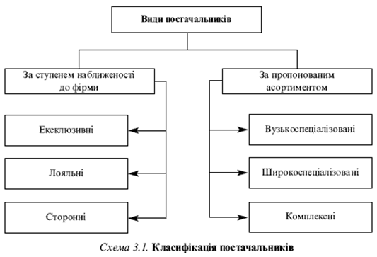 В результаті поєднання декількох структурних систем можна досягти максимальної віддачі, котру дає кожна структура окремо. В той же час необхідно враховувати усі ті слабкі сторони, котрі притаманні окремим підструктурам, що включені в єдину комбіновану структуру організації маркетингової діяльності підприємства. [7;5;26.]. Розглянувши всі види організації служби маркетингу і досліджуване нами підприємство, можна зробити висновок, що ТМ «Смак» працює за сигментной побудовою організації служби маркетингу, що веде до великих затрат коштів.Так як підприємство орієнтується на споживача певного віку, на окремий сигмент ринку. Це можна побачити по том як працює компанія. ТМ «Смак» дуже ретельно, що року, досліджують потреби і побажання до продукції споживачів і з цих опитувань робить добавки чи навпаки до свого товару, адже підприємство працює не тільки на території України, а також постачає соки і на ринки Європи, але зараз коло постачання значно звузився. І їм тому потрібно змінювати стратегію і вид організації служби маркетингу.Для вдосконалення і продовження свого існування на ринку потрібно використовувати товарно-регіональну організацію служби маркетингу , це дозволить підприємству скоротити затрати коштів та часу на роз'їзди і тим самим добре . Розділ III. Аналіз маркетингового потенціалу підприємства 3.1 Аналіз маркетингового середовища Цілком очевидно, що благополуччя ТМ « Смак » залежить не тільки від діяльності самої компанії і її співробітників, але і від протиборства комплексів маркетингу, вживаних різними фірмами, від тенденцій і подій, що відбуваються в маркетинговому середовищі. Будучи мінливою, такою, що накладає обмеження і невизначеність на діяльність ТМ «Смак», маркетингове середовище глибоко зачіпає діяльність виготовлення соків . Маркетингове середовище складається з мікросередовища і макросередовища. Мікросередовище — представлене силами які мають безпосередне відношення до підприємства і їх можливостей, обсягу обслуговування клієнтури , так звані контрольовані чинники на які фірма може в більшому чи в меншому ступені впливати. Основні сили, що визначають структуру маркетингового мікросередовища підприємста наступні: 1. Класифікацію незалежних постачальників, які постачають фірмі згідно з договором необхідні для організації виробничого процесу сировину, устаткування, матеріали та паливними ресурсами тощо, наведено на схемі 3.1. Розглянемо детальніше наведених постачальників. Ексклюзивні постачальники працюють лише з конкретною фірмою. Природно, що працювати з ними вигідно і зручно. Лояльні постачальники обслуговують як фірму, так і її конкурентів. З ними треба поводитись обережно, оскільки вони можуть бути джерелом інформації про фірму для її конкурентів. Проте лояльні постачальники можуть стати фірмі й у пригоді. Сторонні постачальники обслуговують лише конкурентів. Фірма може залучати або не залучити їх до співпраці. Вузькоспеціалізовані постачальники постачають один товар або обмежену асортиментну кількість товарів, широкоспеціалізовані — товарну групу, комплексні — прагнуть забезпечити фірму якомога більшою кількістю необхідних їй товарів.