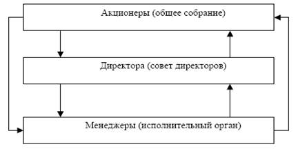Рис. 1.1. - Система корпоративного управления В чем же различаются интересы субъектов корпоративного управления? Менеджеры получают основную часть своего вознаграждения, как правило, в виде гарантированной заработной платы, в то время как остальные формы вознаграждения играют значительно меньшую роль. Они заинтересованы, прежде всего, в прочности своего положения, устойчивости компании и снижении опасности воздействия непредвиденных обстоятельств (например, финансировании деятельности компании преимущественно за счет нераспределенной прибыли, а не внешнего долга). В процессе выработки и реализации стратегии развития компании, как правило, склонны к установлению прочного долгосрочного баланса между риском и прибылью. Менеджеры зависят от акционеров, представленных советом директоров, и заинтересованы в продлении своих контрактов на работу в компании. Они также непосредственно взаимодействуют с большим числом групп, проявляющих интерес к деятельности компании (персонал компании, кредиторы, клиенты, поставщики, региональные и местные власти и пр.) и вынуждены принимать во внимание, в той или иной степени, их интересы. Менеджеры находятся под воздействием ряда факторов, которые не связаны с задачами повышения эффективности деятельности и стоимости компании или даже противоречат им (стремление к увеличению размеров компании, расширению ее благотворительной деятельности как средства повышения личного статуса, корпоративного престижа и пр.). В свою очередь, акционеры могут получить доход от деятельности компании лишь в форме дивидендов (той части прибыли компании, которая остается после того, как компания рассчитается по своим обязательствам), а также за счет продажи акций в случае высокого уровня их котировок. Соответственно, они заинтересованы в высоких прибылях компании и высоком курсе ее акций. При этом акционеры несут самые высокие риски: неполучение дохода в случае, если деятельность компании, по тем или иным причинам, не приносит прибыли; в случае банкротства компании получают компенсацию лишь после того, как будут удовлетворены требования всех других групп. Акционеры склонны к поддержке решений, которые ведут к получению компанией высоких прибылей, но и сопряженных с высоким риском. Как правило, диверсифицируют свои инвестиции среди нескольких компаний, поэтому инвестиции в одну конкретную компанию не являются единственным (или даже главным) источником дохода, а также имеют возможность воздействовать на менеджмент компании лишь двумя путями: 1. при проведении собраний акционеров, через избрание того или иного состава совета директоров и одобрения или неодобрение деятельности менеджмента компании; 2. путем продажи принадлежащих им акций, воздействуя тем самым на курс акций, а также создавая возможность поглощения компании акционерами, недружественными действующему менеджменту. Акционеры непосредственно не взаимодействуют с менеджментом компании и другими заинтересованными группами. Есть еще одна группа участников корпоративных отношений, называемых иными заинтересованными группами («соучастники»/ stakeholders), среди которых: 1. Кредиторы: - получают прибыль, уровень которой зафиксирован в договоре между ними и компанией. Соответственно, прежде всего заинтересованы в устойчивости компании и гаранти