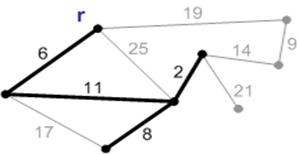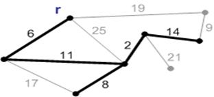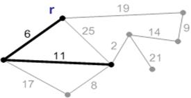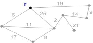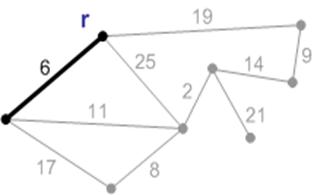 Рисунок 2 – Ребро с весом 6 является минимальным ребро, соединяющим корень с остальными вершинами. Добавляем его к минимальному остову.