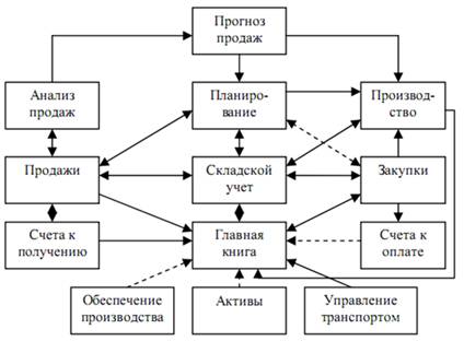 Рис. 2. Логистические цепочки предприятия Производственная логистика – обеспечение качественного своевременного и комплектного производства продукции в соответствии с хозяйственными договорами, сокращение производственного цикла и оптимизация затрат на производство. · Складская логистика – операции, непосредственно связанные с переработкой и оформлением грузов и координацией со службами закупок и продаж, расчетом оптимального количества складов и места их расположения. · Транспортная логистика – оптимизация транспортных систем, выбор вида и типа транспортных средств; определение разноканальных маршрутов доставки; обеспечение технологического единства транспортно-складского процесса. В качестве примера рассмотрим распределительную логистику. С помощью ERP-систем можно наглядно сопоставить прогнозируемый и фактический спрос с поставками продукции, чтобы разрабатывать эффективные планы, обеспечивающие современную доставку. Благодаря единому информационному хранилищу и средствам обработки заказов ERP-системы предоставляют в реальном времени сведения о состоянии заказов, историю платежей, данные о кредитах и доставке. Распределительная логистика поддерживается следующими ERP-процессами, представленными на рис. 4.