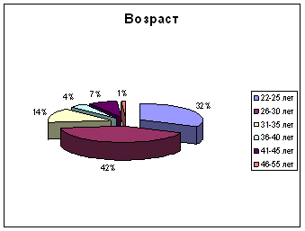 График 6 – деление специалистов в сфере «IT» по полу Средний возраст соискателей – 26–30 лет.