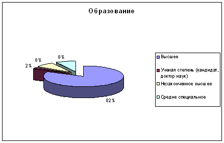 График 7 – деление специалистов в сфере «IT» по возрасту 82% соискателей имеют высшее образование, что вполне объяснимо. IT-отрасль развивается очень быстро, полученные знания и навыки быстро устаревают и специалистам важно регулярно повышать свою квалификацию.