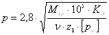 де Мкр = 7,74 Н∙м – крутний момент на ведучій зірочці; Кэ – коефіцієнт експлуатації, який представляє собою добуток коефіцієнтів, які враховують різні умови роботи передачі таблиця 5.7. [12] КЭ = КД КС Кυ Крег Кр (2.16) Отже, КЭ = 1 ∙ 1,5 ∙ 1,25 ∙ 1,25 ∙ 1 = 1,875; z1 – число зубців ведучої зірочки z1 = 29 – 2u (2.17) де u – передавальне число ланцюгової передачі, яке визначається за формулою: