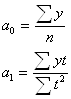 Где у- фактическое (эмпирическое) уровни ряда; t – время (порядковый номер периода или момента времени).