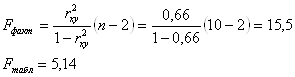 Связь между исследуемыми признаками прямая и сильная. F-критерий Фишера.