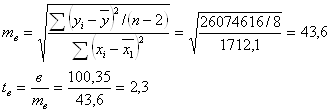 Проведя анализ F-критерия Фишера, можно сделать вывод, уравнение статистически надежно. Статистическая значимость параметров а1 и в1. Стандартная ошибка по параметру а1: