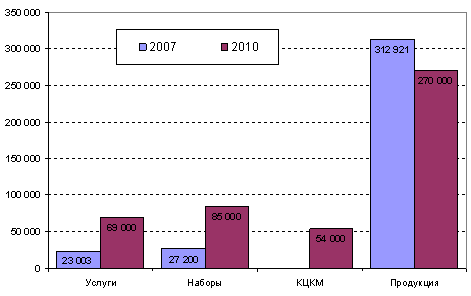 Таблица 2 Объём работ по направлению: заказы сторонних разработчиков в 2007 году и план на 2010 год