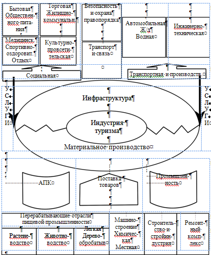 Рис. 1.1. Связь индустрии туризма с хозяйственным комплексом территории [11] Три первые выполняют производственно-снабженческие функции и могут иметь масштабные связи, охватывающие значительную территорию. Они формируют региональные территориально-хозяйственные системы того или иного таксономического уровня в зависимости от разветвленности, дальности связей и состава объектов. Объекты четвертого «канала» локализованные на определенной территории (населенный пункт, агломерация), они напрямую задействованы в туристской сфере и формируют местные (или локальные) территориально-хозяйственные системы. Транспорт входит в обе системы, связывая их в единую хозяйственную систему страны, в состав которой включаются также производство, обеспечивающее функционирование всего народного хозяйства. Они связаны с индустрией туризма в основном опосредованными через производство первой группы связями, а также непосредственными прямыми и обратными связями. Например, машиностроение выпускает транспортные средства, используемые в туризме. Комплекс по обеспечению конструкционными материалами и сырьем поставляет свою продукцию индустрии туризма как непосредственно (моющие средства – химическая, мебель – деревообрабатывающая), так и через другие отрасли (металлические конструкции используются стройиндустрией, продукция химической промышленности – в сельском хозяйстве, других отраслях), его продукция широко используется в народных промыслах и соизмеримом производстве. Топливно-энергетический комплекс, поставляющий энергию всему народному хозяйству, за инженерные коммуникации обеспечивает и индустрию туризма [11, с.138]. 2. ТУРИСТИЧЕСКИЕ РЕСУРСЫ И ИХ КЛАССИФИКАЦИЯ Классификация является научно – методическим приемом по упорядочению информации по определенному признаку. В «Туристский терминологический словарь» приведено такое толкование туристических ресурсов [17]: «Ресурсы туристские – природные, исторические, социально-культурные объекты, с объектами туристического показа включительно, а также другие объекты, способные удовлетворять духовные потребности туристов, способствовать восстановлению и развитию их физических сил, то есть доступны для ознакомления и использования независимо от формы собственности, если к тому нет законодательно наложенных ограничений. Природные и антропогенные геосистемы, тела и явления природы, артефакты, которые имеют комфортные свойства и потребительскую стоимость для рекреационной деятельности и могут быть использованы для организации отдыха и оздоровления определенного контингента людей в определенное фиксированное время с помощью технологии и имеющихся материальных возможностей ... ». Как видим, трактовки понятия «туристические ресурсы» достаточно широко, а номенклатура туристических ресурсов практически безгранична. Туристические ресурсы – это те объекты природы, истории, культуры, текущие события, явления, которые могут быть использованы при создании и реализации туристского продукта. Туристические ресурсы – это часть туристско-рекреационного потенциала определенной территории, которая включена в состав туристического продукта и подлежит реализации с туристической целью. Туристические ресурсы являются отчасти мотивационной основанием для выбора определенного ту