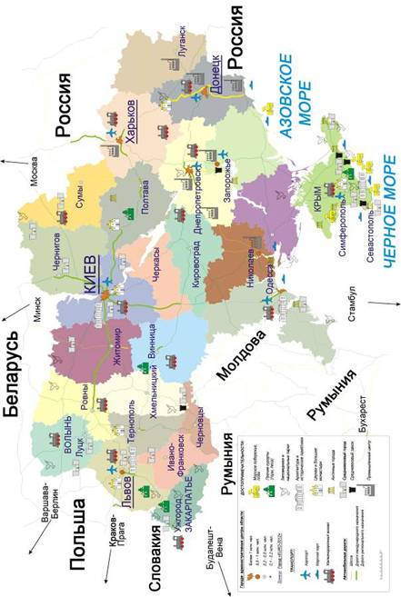 Картосхема 7.3. Музеи Украины под открытым небом [26] Индустрия туризма в Украине охватывает и детский отдых. Ежегодно устраиваются поездки в причерноморские базы отдыха, устраиваются образовательные экскурсионные путешествия по всей территории страны. Активное продвижение после 2000-го года получил автобусный туризм по стране. Практически в любом крупном городе можно оформить групповой выезд по культурно-историческим и самобытным местам страны. Для тех, кого не устраивает маршрут готовой программы поездки, есть возможность составления индивидуального группового тура. В преддверии чемпионата Европы по футболу 2012 года индустрия туризма в Украине значительно активизировалось. На данный момент вкладываются огромные средства в строительство стадионов, гостиниц международного класса, восстанавливаются древние памятники культуры, разрабатываются программы отдыха с новыми экскурсионными поездками [19]. 8. ПРОБЛЕМЫ И ПЕРСПЕКТИВЫ РАЗВИТИЯ ТУРИЗМА В УСЛОВИЯХ ГЛОБАЛИЗАЦИИ В Украине развитие туризма осуществляется очень медленно. Существующая нормативно-правовая база, регламентирующая туристическую деятельность, не является законченной и совершенной. Основными причинами торможения развития туризма являются: ●отсутствие целостной системы государственного регулирования туризма в регионах; ●подчинение учреждений размещения туристов, санаторно-курортных, оздоровительных и рекреационных учреждений различным министерствам и ведомствам, а также другим органам исполнительной власти; ●нечеткое определение в законодательстве принадлежности предприятий гостиничного хозяйства к предприятиям, которые предоставляют туристические услуги; ●медленные темпы роста объемов инвестиций в развитие материальной базы туризма; ●несоответствие подавляющего большинства туристических учреждений, которые постепенно приходят в упадок, международным стандартам и требуют значительных инвестиций; ●недостаточное обеспечение туристической отрасли высококвалифицированными специалистами; ●недостаточность государственной поддержки и комплексного подхода к рекламированию национального турпродукта на внутреннем и международном рынке туристических услуг; ●недостаточность методической, организационной, информационной и материальной поддержки субъектов предпринимательства туристической отрасли со стороны государства; ●тенденция сокращения количества предприятий гостиничного хозяйства; ●высокие налоги; ●неудовлетворительное состояние туристической, сервисной и информационной инфраструктуры в зонах автомобильных дорог и международных транспортных коридоров. Для решения выделенных проблем необходима программа реформирования туриндустрии и перехода ее к устойчивому развитию, в которую должны входить следующие элементы [1]: ●совершенствование существующей законодательной базы и создание эффективных механизмов ее реализации; ●подготовка квалифицированных и ответственных специалистов; ●развитие и внедрение финансово-экономических механизмов обеспечения устойчивого развития туризма как приоритетного направления; Развитие национального туризма невозможно на основе только рыночных механизмов, поскольку туризм не только экономическое явление, но и глубоко социальное, духовное и культурологическое. Поэтому н