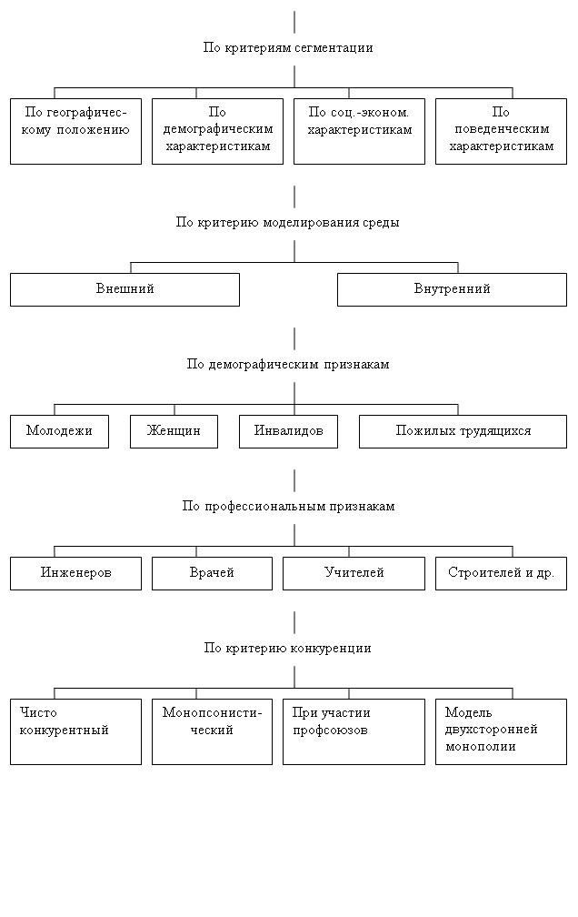 Курсовая работа: Современный рынок труда и проблемы безработицыКурсовая работа: Современный рынок труда и проблемы безработицыОглавление Введение Глава 1. Рынок труда: занятость и безработица 1.1 Сущность, структура и функции рынка труда 1.2 Сущность, виды и формы занятости 1.3 Сущность, формы и виды безработицы Глава 2. Основные направления и реализации действии по обеспечению стабильности на рынке труда 2.1 Структура рынка труда 2.2 Анализ деятельности правительства Москвы по сокращению и стабилизированию нынешней ситуации на рынке труда 2.3 Практические рекомендации по совершенствованию программных мероприятий в сфере рынка труда Заключение Список использованной литературы Приложение Введение Сфера труда – важная и многоплановая область экономической и социальной жизни общества. Она охватывает как рынок рабочей силы, так и ее непосредственное использование в общественном производстве. Рынок рабочей силы, или как его еще называют, рынок труда, имеет принципиальную особенность – его составляющими являются непосредственно живые люди, которые не только выступают носителями рабочей силы, но и наделены специфическими особенностями: психофизиологическими, социальными, культурными, религиозными, политическими и др. Эти особенности оказывают существенное влияние на мотивацию и степень трудовой активности людей и отражаются на состоянии рынка рабочей силы в целом. На рынке труда получает оценку стоимость рабочей силы, определяются условия ее найма, в том числе величина заработной платы, условия труда, возможность получения образования, профессионального роста, гарантии занятости и т.д. Рынок труда отражает основные тенденции в динамике занятости, ее основных структурах (отраслевой, профессионально-квалификационной, демографической), т.е. в общественном разделении труда, а также мобильность рабочей силы, масштабы и динамику безработицы. Рынок труда представляет собой механизм осуществления контактов между покупателями рабочей силы (нанимателями) и продавцами рабочей силы (нанимаемыми). Этот рынок включает не только специально организованные учреждения – биржи труда, но и все индивидуальные сделки по найму рабочей силы. Рынок труда тесно связан с остальными подсистемами рынка. Например, для того чтобы пользоваться спросом, рабочая сила должна обладать определенной совокупностью физических, умственных и профессиональных способностей. Реализуя эти способности в процессе производства, она должна постоянно воспроизводиться. Это зависит, в частности, от состояния рынка потребительских товаров. На рынке рабочей силы должна присутствовать конкуренция как основная движущая сила совершенствования способностей работника к труду. Круг продавцов на рынке труда чрезвычайно разнообразен. В него входят и шахтер, нанимающийся для добычи угля под землей, и рок-певец, подписывающий договор на проведение концертов, и ученый, получающий деньги для проведения нужных заказчику исследований, и министр, которому государство платит жалованье за руководство определенной сферой деятельности. Испытывая потребность к постоянному воспроизводству, причем каждый раз на новом, более высоком уровне, носитель рабочей силы ищет только такого работодателя, которому он мог бы предложить ее на наиболее выгодных условиях. Поэтому в спросе 