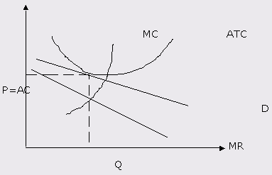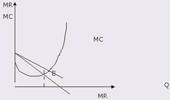 Если предельные издержки превысят предельный доход (MC>MR),то фирма будет сокращать производство, так как ее прибыль уменьшается. Точка E является точкой максимальной прибыли, здесь предельные издержки производства и предельный доход равны, а их кривые пересекаются в этой точке. Правило MR=MC является точным ориентиром максимизации прибыли для всех фирм на любом рынке: чисто конкурентном, монополистическом, монополистически конкурентном, олигополистическом и других. Для чисто конкурентного рынка правило максимизации прибыли имеет вид: P=MR=MC. Цена равна предельным издержкам и предельному доходу, что представляет собой частный случай правила MR=MC. Если цена будет превышать минимум средних переменных издержек, то фирма будет максимизировать прибыль, производя объем продукции при котором цена или предельный доход равны предельным издержкам. Любая монопольная фирма, стремящаяся к прибыли, поступает также как и любая фирма в конкурентной отрасли. Монопольная фирма будет производить каждую последующую единицу продукции до тех пор, пока ее реализация обеспечивает большой прирост валового дохода, чем увеличение валовых издержек, т.е. фирма будет увеличивать темпы производства до тех пор, пока предельный доход будет равен предельным издержкам. Монополист всегда стремится к максимальной совокупной прибыли, а не максимальной прибыли на единицу продукции, т.е. монополист всегда стал бы продавать большее количество продукции по меньшей цене, чем меньшее количество по большей цене. В долговременном периоде фирмы, получающие большую прибыль, не очень частое явление. Это может происходить в результате нескольких причин. Например, если фирма производит продукт или услуги, пользующиеся спросом, которую конкурентным фирмам очень сложно производить, или предприятие имеет патент, который дает ей какое-то временное преимущество над конкурентами. Такие прибыли могут быть у фирм уже вступивших в отрасль, т.к. существует ряд ограничений, в т.ч. финансовые, для вступления других фирм в данную отрасль. В основном же фирмы, работающие в долговременном периоде, характеризуются безубыточностью, т.е. получением нормальной прибыли.