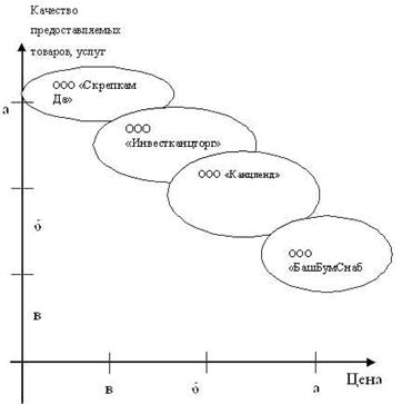 Реализуя канцтовары фирмы в основном используют те же приемы что и их конкуренты. Экономическая грамотность руководителей анализируемых фирм привела их к росту и способности выживать на рынке. В основном соперничество строится на учете конкурентоспособности фирмы посредством цен. Эта стратегия связана с проведением агрессивной политики по снижению цен конкурентами. Используя данную стратегию исследуемое предприятие в целях укрепления монопольного положения на рынке, расширения рыночной доли и поддержания нормы прибыли от продаж не меняет цены, несмотря на то, что предприятия-конкуренты это уже сделали. Это позволяет какое то время получать большую прибыль, нежели конкуренты, но есть риск снижения объема продаж. 2.3 Анализ потребителей ООО "Инвестканцторг" предлагает буквально все канцтовары, какие только могут понадобиться. Вот только некоторые пункты полного перечня товаров магазина: бумага и бумажная продукция самых различных форматов, от А0 до А4 и не только, канцелярские товары - это папки, офисные наборы, штемпельная продукция, степлеры и дыроколы, пишущие принадлежности, скрепки и кнопки, словом - всё, что необходимо современному офису. Потребителями канцтовара, предлагаемого ООО "Инвестканцтор" являются в основном мелкие оптовики, которые в основном активизируются в период с август по октябрь и предприятия. ООО "Инвестканцторг" устанавливает определенную шкалу возможных скидок и надбавок к среднему уровню цен для разных рынков, их сегментов и покупателей, характеристик рынка и его расположения, времени покупок и модификаций товаров. Данная стратегия предусматривает скидки за количество покупаемого товара, скидки постоянным партнерам, установление разного уровня цен и их соотношения. Вследствие увеличение объемов продаж и расширение клиентской базы. ООО "Инвестканцторг" также занимается розничной продажей, но в данном случае цены становятся не конкурентными по сравнению с ценами других фирм. 2.4 Определение конкурентоспособности ООО "Инвестканцторг"