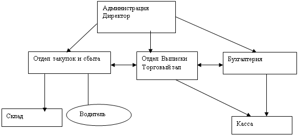 Рис.1. Организационная структура ООО "Инвестканцторг" Организационная структура линейная, т.к. во главе подразделения находится руководитель-единоначальник, наделенный всеми полномочиями, осуществляющий единоличное управление подчиненными ему работниками и сосредотачивающий в своих руках все функции управления. В ведении руководителя находятся вопросы стратегического характера. Он контролирует деятельность всех отделов. Также в его компетенции вопросы движения финансовых потоков. Центральная проблема организации состоит в координации закупок и продажи. В виду небольшого размера рассматриваемого предприятия закупка и продажа находится в одних руках, т.е. эти отделы имеют одного руководителя, в компетенцию которого входят вопросы закупки по всему ассортименту. Преимущество этой формы состоит в том, что руководитель владеет сферой сбыта и информацией о спросе, что дает ему быстро реагировать на изменения на рынке. На предприятии не используется разделения в соответствии с группами товаров, степени обслуживания, величине покупателей и т.д. Отношения между отдельными местами и задачами характеризуются отношениями подчиненности сверху и снизу, или отношениями по горизонтали. 1.3 Месторасположение предприятия ООО "Инвестканцторг"Предприятие имеет складскую площадь и офисное помещение по адресу: г. Уфа, пр. Салавата Юлаева, 59. Торговый зал ООО "Инвестканцторг" состоит из восьми витрин, на которых представлены образцы канцелярских товаров. Склад находится в соседнем здании с офисом, что значительно упрощает схему документооборота. Кроме того, менеджеры могут контролировать наличие материала на складе, отгрузку, погрузку и проводить инвентаризацию в непосредственной близости от офиса. 1.4 Оценка экономической деятельности ООО "Инвестканцторг"Удовлетворяя потребности розничных торговцев, предприятие оптовой торговли получает доход от торговой надбавки на продаваемые товары. Чтобы оценить эффективность данного бизнеса следует сравнить затраты розничных предприятий на формирование ассортимента, доставку товаров, закупку, цены, по которым покупатели могут закупать канцтовары оптового предприятия на организацию закупок требуемого ассортимента, хранение, доставку товаров мелкими партиями. В таблице 1.4.1 отражена структура имущества организации и источников его формирования. Таблица 1.4.1Структура имущества организации и источников его формирования