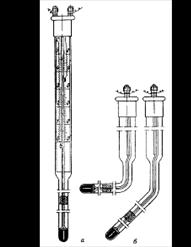 Дилатометрический термометр (рис.1.1) основан на измерении меняющихся с температурой размеров тел. Из дилатометрических приборов наибольшее распространение получили жидкостные, в том числе ртутные и спиртовые. Недостатками дилатометрических термометров являются их хрупкость и большая тепловая инерция. Контактный термометр (рис.1.2) состоит из ртутного термометра с двумя шкалами (верхней и нижней). По нижней определяют температуру окружающей среды. Верхняя необходима для установления на ней контролируемого значения температуры. Контактный термометр служит для сигнализации и поддержания постоянной температуры контролируемой среды. Впаянные в капилляр один, два или три платиновых контакта на отметках шкалы, соответствующих температурным точкам сигнализации или заданным значениям регулируемой температуры, обеспечивают замыкание или разрыв электрических цепей.