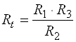 Мост уравновешивается с помощью реохорда R. При этом разность потенциалов на измерительной диагонали должна равняться нулю. Уравновешивая плечи моста при помощи реохорда, замеренную температуру отсчитывают по температурной шкале реохорда. Сопротивление датчика определяется по формуле.