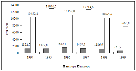 Товарная структура агропродовольственного импорта России, 1996-1999 гг