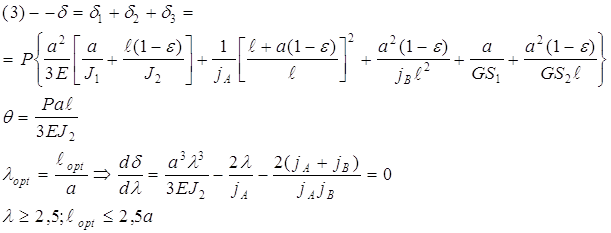 В зависимостях (1) и (2) и в последующих под P и Q понимают составляющие сил, приведённые к одной плоскости. Перед Q принимают знак (+), если силы P и Q направлены в одну сторону, и знак (–), если они направлены противоположно. Введя в зависимости (1) и (2) безразмерное отношение l=l/a, характеризующая относительную длину межопорной части шпинделя, из уравнения dd/dl=0 находят lopt –оптимальное по условию жёсткости® и соответствует lopt. Схема . приводной элемент расположен на задней консоли на расстоянии С от задней опоры. Этот случай,– для внутришлифовальных станков и отделочно расточных головок.