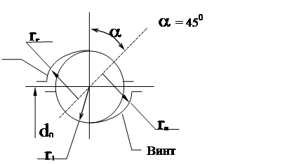 Обычно применяют передачи с наиболее технологичным полукруглым профилем резьбы : rв = rг » (1,03...1,05) r1 – для снижения контактных напряжений. Размеры элементов ПВ–ГК стандартизованы (ГОСТ 25329–82). Расчет передачи винт–гайка качения (В–ГК). Исходные данные и цель расчета. ПВ–ГК выходит из строя в результате , — * усталостного разрушения поверхностных слоёв шариков , гайки и винта; * потери устойчивости винта; * износа элементов передачи и снижения точности. Возможные причины, — * слишком большая нагрузка на винт; * низкая расчетная долговечность; * значительный относительный перекос В и Г; * неудовлетворительная защита от загрязнений. Цель расчета ПВ–ГК состоит в определении номинального диаметра винта d0 и в подборе по каталогу такой передачи, которая удовлетворяла бы всем требованиям работоспособности. Исходные данные , — * длина винта, наибольшая расчетная длина; * способ установки на опорах; * ряд значений осевой нагрузки, которые определяются для различных операций, выполняемых на МРС; * ряд частот вращения В(г). Можно исходить из величины крутящего момента на ходовом винте М = Мд * h / i где: Мд – крутящий момент на валу ЭД; h – КПД передачи от ЭД к винту; i – передаточное отношение этой передачи. Осевая сила действующая на винт,