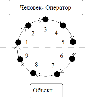 Ч–О : Оператор станка ЧПУ ; СУ : Блок ЭЧПУ ; О : Станок . 1 – получение Ч–О от СУ разнообразной выходной информации в виде сигналов от приборов ( отсчётные , световые , звуковые ) . 2 – формирование человеком сигналов управления в виде действий по настройке , регулирования , управления станком . 3 – непосредственное воздействие объекта ( среды ) на Ч–О : расположение элементов блока управления должно соответствовать психофизиологическим возможностям . 4 – воздействие человека на объект (среду) : работа со станком требует не только определённых знаний и навыков ,но и «совместимости» параметров объекта с человеком ( с учётом «помех» ) . 5 – воздействие СУ на объект ( среду ) : система ЧПУ станка может иметь определённые геометрические размеры ( что не всегда позволяет разместить её в станке ) . 6 – воздействие О(С) на СУ : СЧПУ должна нормально работать в условиях вибрации , загрязнённой атмосферы цеха , и других нежелательных воздействий . Системный подход . Чтобы упростить сложные процессы анализа работы Человека–Оператора в системах взаимосвязей применяют частотные модели поведения Человека–Оператора . Чаще всего Человек–Оператор выступает в роли «машины» по приёму и выработке информации .