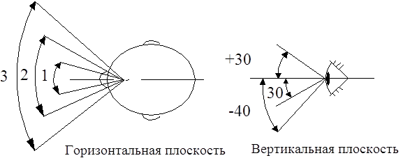 –и мгновенного зрения a=180–область наилучшего цветового зрения и достаточной относительной остроты зрения(на границе зоны ООЗ падает на 20% относительно ЗТЗ);
