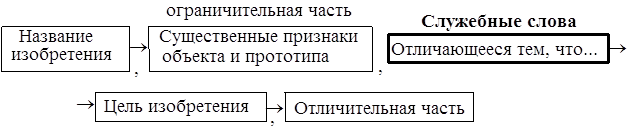 Суть предлагаемого решения в виде перечисления существенных отличительных признаков. Цель изобретения излагается короче и поясней. В отличительной части, формально, должен содержаться "объём притязаний", т.е. то новое на что претендует автор: конкретное ТР. Формула изобретения – документ не только технический, но и юридический, показывающий, на какой объём признаков распространяется защита. Поэтому нужно очень тщательно подбирать признаки в формулу, не вводить в неё несущественные признаки… И вообще, экспертиза уважает короткие формулы (!). Кроме описания в заявку… входит ещё ряд документов, которые мы только перечислим с короткими комментариями. Весьма важны документы, дополнительно раскрывающие сущность изобретения: акты испытаний изобретения; заключение о полезности, подтверждающее работоспособность и положительный эффект от использования… Справка о творческом участии соавторов, в которой чётко отражается кем из соавторов, что сделано, и приводится процент участия (для распределения вознаграждения). И последнее – это реферат, содержащий краткое изложение материалов заявки. n При патентной защите новых ТР, кроме использования нормативно–методических материалов: ГОСТы, инструкции, условия и т.п., целесообразно руководствоваться логикой создания изобретений, учитывая сущность изменений объекта прототипа. Так, например, понятие "Задача" не входит в число нормативных критериев изобретения, однако достижение нового полезного эффекта означает, что изобретением решена новая, ранее нерешенная задача. Принятые критерии "новизна" и "существенные отличия" являются составляющими более общей характеристики – существенной новизны изобретений, возникающей при разрешении технических противоречий. Существенная новизна может характеризоваться количественно числом существенных отличительных признаков, и качественно – системным уровнем изменений объекта–прототипа, новизной использованного для решения задачи знания и изменением параметров объекта. В результате изменения параметров объекта изменяются две обобщенные противоречивые характеристики: полезность объекта и плата за полезность. Эти изменения должны соответствовать требуемым внешнеобъектному и внутриобъектному положительным эффектам, если задача считается решённой.