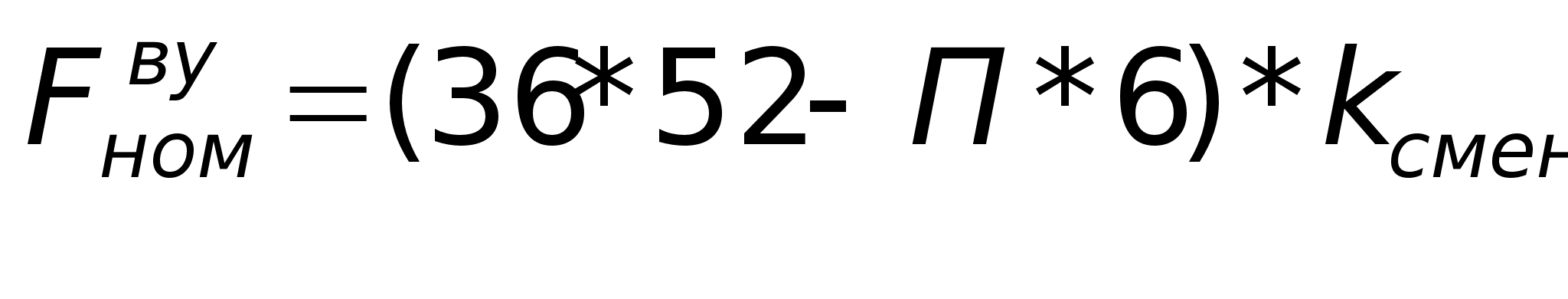где kсм - количество смен, kсм =2; П - количество праздников, П=9; 41(36) - количество часов в неделю; 52 - количество недель.