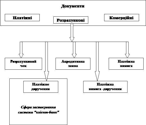 Рис. 1.1.2. Документальна сфера застосування системи “клієнт-банк” З рис. 1.1.2. видно, що система “клієнт-банк” охоплює невеликий сегмент документів, що використовуються при розрахунках – лише платіжні доручення. Однак, статистичні дослідження визнають, що саме платіжні доручення забезпечують більше 90% руху грошових коштів у платіжній системі. Близько 70% цього руху забезпечують системи “клієнт-банк” комерційних банків. Зважаючи на такі цифри можна відмітити велику роль системи “клієнт-банк” у розрахункових операціях банку. Розрахункові і платіжні документи в національній валюті, що подаються клієнтами в банк на паперових носіях, строго уніфіковані, мають єдину для всієї країни стандартну форму та установлений набір реквізитів. До обов’язкових реквізитів усіх розрахункових документів відносяться: · найменування документа; · номер документа; · число, місяць, рік його складення; · найменування платника й одержувача коштів, їхні ідентифікаційні коди відповідно до єдиного державного реєстру підприємств і організацій України, номера їхніх рахунків у відділеннях банку; · найменування банків платника й одержувача коштів, їхнє місцезнаходження і номер МФО; · сума платежу цифрами і прописом; · призначення платежу: найменування товару, посилання на документ, на підставі якого здійснюється операція (договір, рахунок, товарно-транспортна накладна і т.д.) із указівкою його номера і дати. · підпис відповідальних осіб платника і відбиток печатки, що проставляється на першому екземплярі документа незалежно від способу виготовлення розрахункового документа (у разі використання системи “клієнт-банк” даний реквізит замінюється електронним цифровим підписом; · сума податку на додану вартість або запис «без податку на додану вартість». Ці реквізити повинні бути присутні на платіжних документах незалежно від форми їхнього подання: чи то паперова, чи електронна. У тому випадку, якщо хоча б один із перерахованих вище реквізитів (якщо вони передбачені формою документа) не заповнений або заповнений неправильно, банк не приймає такий документ до виконання. Банк платника приймає і виконує документи від клієнтів протягом операційного дня, час якого регламентується режимом роботи банку. На всіх паперових розрахункових документах банк в обов’язковому порядку в правому нижньому куту проставляє дату надходження та виконання цих розрахункових документів. Програмне забезпечення «Операційний день – RS-bank», дозволяє в режимі реального часу відслідковувати безготівкове надходження коштів на рахунки клієнтів і з обліком цих надходжень проводити платежі клієнтів. Банк одержувача зобов’язаний зараховувати гроші на рахунки клієнтів не пізніше наступного робочого дня після одержання інформації з розрахункової палати. Користувачі системи “клієнт-банк” мають змогу практично в режимі реального часу спостерігати за надходженнями на свої рахунки за допомогою передачі електронних виписок з банку по рахунку клієнта, інші ж клієнти такої змоги не мають і, як правило дізнаються про нові надходження наступного робочого дня після формування паперової виписки по рахунку. 1.2. Етапи розвитку та принципи роботи системи “клієнт-банк”. З розвитком сучасного ринку комп’ютерних технологій, банки не могли залишатись осторонь останніх наукових прор