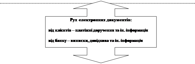 Приріст доходу від встановлення системи “клієнт-банк” в основному залежить від кількості нових клієнтів, тому значення наближаються до пропорцій приросту кількості клієнтів, що встановили систему “клієнт-банк”. Дохід же від обслуговування системи має тенденцію до зростання – це викликано постійним збільшенням кількості клієнтів, що сплачують щомісячні внески за користування системою “клієнт-банк”, не зважаючи на те, що кількість нових клієнтів системи у досліджуваному місяці може бути меншою, аніж кількість нових клієнтів у попередньому місяці. Тому з часом загальна лінія розподілу буде зміщуватись у сторону збільшення частки щомісячних платежів по відношенню до одноразових за встановлення системи. Підсумовуючи структурний аналіз системи “клієнт-банк” та роль її показників у загальних показниках банку, можна відзначити нерівномірність розподілу між кількістю клієнтів, що обслуговуються в системі “клієнт-банк” та кількістю і сумами платежів, що проходять через дану систему – а саме значне перевищення частки останніх близько 55% та 70% відповідно у порівнянні з часткою клієнтів у 25% в середньому. Одночасно доходи від системи в загальній структурі доходів від розрахункових операцій ледь досягають 6%. Нами було встановлено основні причини таких відмінностей структури – прихильність до системи, в першу чергу, великих підприємств, з великою кількістю платіжних документів та сумами платежів; та неспівставність ознак групування доходів від системи “клієнт-банк” та ознак групування клієнтів, що використовують систему чи кількості або сум платежів через систему тощо. РОЗДІЛ 3 ВДОСКОНАЛЕННЯ ДІЮЧОЇ СИСТЕМИ РОЗРАХУНКІВ В СИСТЕМІ “КЛІЄНТ-БАНК” 3.1. Вдосконалення організаційної системи електронних розрахунків. Для створення законодавчої основи для широкого застосування електронних засобів зв'язку, необхідно насамперед уточнити юридичний статус так званого електронного документа. Сьогодні в українському законодавстві дуже обмежено визначено поняття "документ", тим більше — електронний документ. Для законодавчого визначення “електронного документа” потрібно створити правову конструкцію, яка б могла виконувати всі основні функції звичайного паперового документа. Документ сам по собі не існує. Він вбудований у досить складну правову систему, в якій є важливим, але далеко не єдиним компонентом. До інших складових відносять встановлені процедури експертизи істинності, процесуальні правила використання документа як доказу в суді, систему реєстрації та багато іншого. І відмінність власне документа від будь-якого тексту полягає саме в його приналежності до зазначеної правової системи. Електронний документ як такий теж не існує. Тому законодавчому визначенню підлягає не тільки електронний документ, а й правова система, частиною якої він є. Інакше кажучи, необхідно створити процедури експертизи електронних документів, які були б настільки ж переконливими для суду, наскільки переконливими є звичні методи аналізу паперових документів. Потому слід законодавче їх підтримати і, нарешті, запровадити такі експертизи в регулярну судову практику. Важливо розрізняти поняття власне документа і поняття його змісту, тобто вміщеної в ньому інформації. Інакше кажучи, документ можна розглядати як: • сполучення інформац