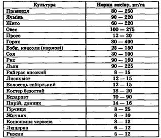 де: Q – норма висіву, шт/га; А – абсолютна маса насінини, т;П – польова схожість насіння,%. Діапазон норми висіву насіння просапних культур розраховують за формулою, шт/м: