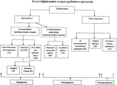 Для акционерных обществ, кооперативов, предприятий с иностранными инвестициями обязательным является создание резервного фонда. Он создается на случай прекращения деятельности предприятия для покрытия кредиторской задолженности. Резервный фонд акционерного общества используется на выплату процентов по облигациям и дивидендов по привилегированным акциям в случае недостаточности прибыли для этих целей. Отчисления в резервный фонд производятся до достижения размеров этого фонда, установленного учредительными документами, но не более 25% уставного фонда, а для акционерного общества — не менее 10%. При этом сумма отчислений не должна превышать 50% облагаемой налогом прибыли. Средства, направляемые на развитие производственной базы, и финансовые вложения образуют фонд накопления, а средства, используемые на повышение благосостояния и социальные нужды работников, направляются в фонд потребления. Эти фонды образуются на предприятии в том случае, если это предусмотрено учредительными документами. Основным источником для оценки состояния финансовых ресурсов является бухгалтерский баланс. Бухгалтерский баланс представляет собой документ, отражающий все наличные ресурсы предприятия в стоимостной оценке по их видам и источникам образования. Показатели эффективности использования финансовых ресурсов входят в большую группу показателей финансового состояния, определяемых на основе бухгалтерского баланса. К их числу относятся показатели доходности (рентабельности), кредитоспособности, уровня самофинансирования, валютной самостоятельности, конкурентоспособности и многие другие. 26. Классификация затрат рабочего времени Все затраты рабочего времени в целях единого подхода к определению норм делятся на определенные категории. Время, затрачиваемое на выполнение операции, состоит из времени работы и времени перерывов. Время работы включает в себя время производительной работы, обусловленное выполнением производственного задания, и время, затраты которого не обусловлены производственным заданием Подготовительно-заключительное время (ПЗ) обусловлено переходом на изготовление нового заказа и затрачивается на выполнение приладки, приправки, переналадки оборудования при переходе на другой формат, объем и т.п. Время оперативной работы (ОП) предназначено для непосредственного выполнения производственного задания. В зависимости от степени участия человека в выполнении операции делятся на ручные, машинно-ручные, машинно-автоматические и аппаратурные. На машинно-автоматических и аппаратурных операциях время оперативной работы состоит из основного времени (О) и вспомогательного времени (В). Время обслуживания рабочего места (ОМ) — постоянные затраты рабочего времени на поддержание рабочего места в рабочем состоянии. Время на обслуживание рабочего места подразделяется на время технического и организационного обслуживания. На машинно-автоматических и аппаратурных операциях выделяется перекрываемое и не перекрываемое время. Перекрываемым считается время выполнения работ в период автоматического хода машины. Не перекрываемое время требует остановки оборудования. Время работы, не обусловленное выполнением производственного задания, включает время непроизводительной и случайной работы. Время непроизводител