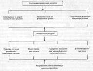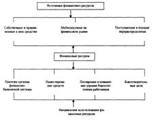 В качестве источников финансовых ресурсов могут быть использованы собственные и приравненные к ним средства; средства, мобилизуемые на финансовом рынке и поступающие в порядке перераспределения. Собственные и приравненные к ним средства включают в себя валовую прибыль, амортизационные отчисления, устойчивые пассивы (минимальная задолженность по заработной плате и отчисления на социальные нужды и пр.), целевые поступления, паевые и иные взносы членов трудового коллектива. К средствам, мобилизуемым на финансовом рынке, относятся кредитные инвестиции, средства от продажи собственных акций, облигаций и других видов ценных бумаг. К средствам, поступающим в порядке перераспределения, относятся бюджетные субсидии (ассигнования), страховое возмещение по наступившим рискам, дивиденды и проценты по ценным бумагам других эмитентов, прибыль от проведения финансовых операций. Структура финансовых ресурсов по источникам поступления характеризуется высоким удельным весом прибыли. В связи с развитием рыночных отношений возрастает значение также и других источников поступления финансовых ресурсов. Потребность предприятия в финансовых ресурсах определяется в процессе финансового планирования на основе составления баланса доходов и расходов. Финансовые ресурсы используются на платежи органам финансово-банковской системы: налоговые платежи в бюджет, уплата процентов за пользование банковскими кредитами, погашение ранее взятых ссуд, страховые платежи и т.п. (рис.2.2). Вторым направлением использования финансовых ресурсов является инвестирование собственных средств в капитальные затраты (реинвестирование), связанное с расширением производства, его техническим обновлением, переходом на новые прогрессивные технологии, использованием ноу-хау и т.п.; инвестирование в ценные бумаги, приобретаемые на рынке, а именно акции и облигации других предприятий в государственные ценные бумаги, займы и др. Третьим направлением использования финансовых ресурсов является формирование средств, направляемых на социальные нужды, материальное стимулирование работников коллектива и повышение уровня их благосостояния. За счет финансовых ресурсов предприятия могут производить отчисления на благотворительные цели.
