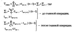 где t(гл) — технологическое время на учетную единицу продукции на главной операции. Главной называется операция, имеющая наибольшую продолжительность обработки. Величина t(гл) определяет периодичность обработки изделий из партии на всех операциях производственного цикла. Время перерывов на i-й операции вычисляется по формуле: