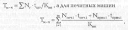 где е — учетная единица продукции (1000 знаков, 1000 л-отт., 1000 книг ит.п.); Кmn — коэфф. технических потерь; Ц — скорость работы оборудования; р — кол-во единиц продукции, получаемой за один рабочий цикл. Коэфф. технических потерь учитывает снижение установленной скорости работы оборудования за счет ее замедления при пусках и остановках, колебания напряжения в электросети и др. Норматив вспомогательного времени определяется на неперекрываемые затраты рабочего времена, которые повторяются в течение смены. Они рассчитываются на учетную единицу продукции по формуле