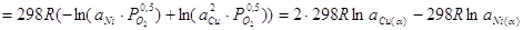 чем 2.4 Расчёт равновесия CuO – NiO – NiOx при 25оС Для того, чтобы рассчитать значение х, соответствующее максимальной степени окисленности никеля в оксиде, который может образоваться в нормальных условиях, необходимо воспользоваться уравнениями:
