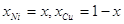 2.3 Расчёт диаграммы состояния системы Cu – Ni – O при 25оС Для построения диаграммы состояния Cu – Ni – O были использованы данные с диаграмм состояния Cu – O (рис. 1.3), Ni – O (рис. 1.4) и Сu – Ni (рис. 1.1.). Поскольку химическое сродство никеля к кислороду выше, чем меди, то можно предположить, что почти при любом составе сплава Сu – Ni в первую очередь будет окисляться именно никель из сплава, то есть будет реализовываться равновесие сплав – NiO, а не сплав – Cu2O. Для того, чтобы найти точку, отвечающую составу сплава, равновесного с NiO и Cu2O, нужно рассмотреть систему уравнений