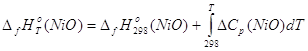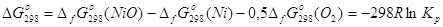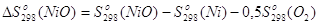термодинамические данные для никеля получены только для оксида NiO: Таким