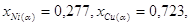 Координаты купола расслаивания при различных температурах сняты с диаграммы состояния Cu – Ni (рис. 1.1) и представлены в табл. 1.6. Табл. 1.6. Координаты купола расслаивания твёрдого раствора при различных температурах
