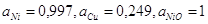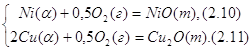 химическое сродство никеля к кислороду выше, чем меди, то начиная с мольных