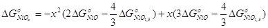 Результаты расчётов стандартных энергий Гиббса образования NiO и NiO1,5, а также зависимостей стандартных энергий Гиббса образования NiOx от х представлены в табл. 2.6. Табл. 2.6. Стандартные энергии Гиббса образования оксидов никеля при различных температурах