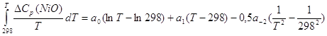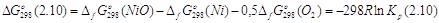 Все необходимые исходные данные для расчёта стандартной энергии Гиббса образования NiO представлены в табл. 2.2 – 2.3.