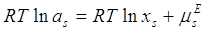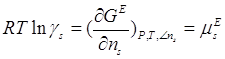 избыточный химический потенциал (или избыточную энергию Гиббса), а для