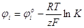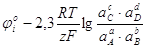 Здесь φi – равновесный электродный потенциал реакции, φio – стандартный электродный потенциал.