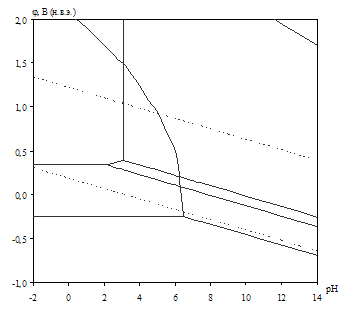 Диаграмма рН – потенциал системы сплав МНЖМц30–1–1 – Н2О при 25оС,